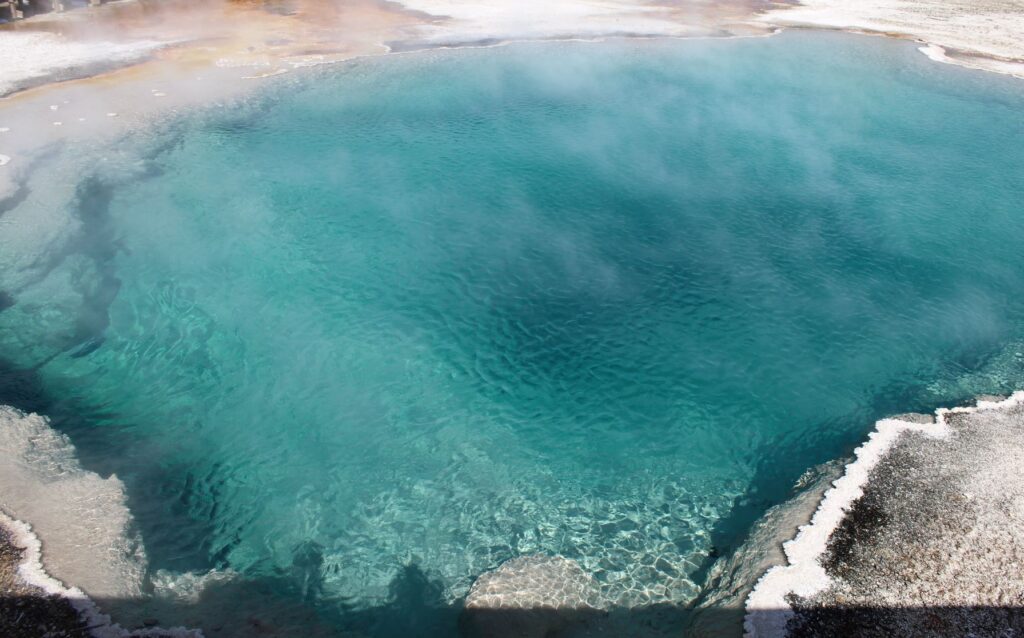 - Abyss Pool. C’est l’une des plus profondes sources d’eau chaude du Parc. Elle revendique 16 mètres de profondeur. Sa couleur bleu turquoise est un vrai ravissement pour les yeux. Sa dernière éruption date de juin 1992. Elle fut, paraît-il, spectaculaire avec des jets atteignant 24 mètres et un bain bouillonnant. Elle prit alors l’ascendant sur ses voisines, la Blue Funnel Spring et la Perforated Pool qui se sont refroidies et enfoncées. Depuis, cette vénérable dame se repose.